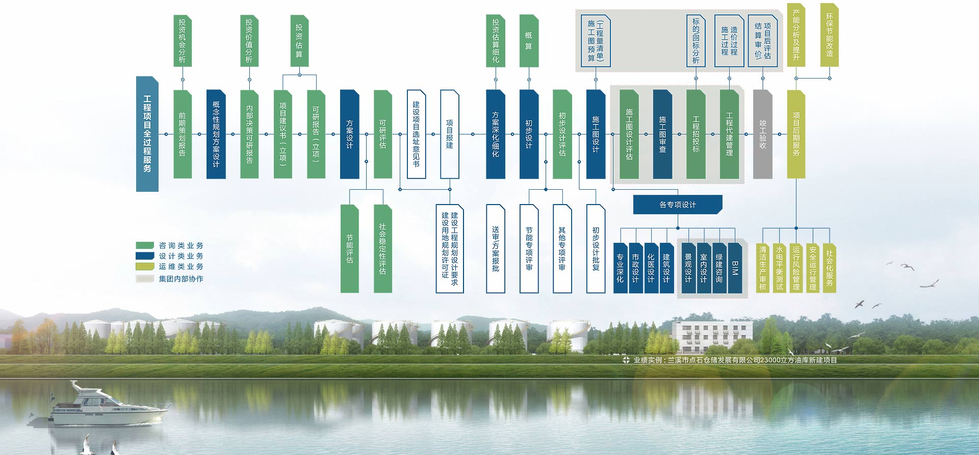 規(guī)劃編制、經(jīng)濟(jì)發(fā)展研究、可行性研究、造價(jià)咨詢、后評(píng)價(jià)、節(jié)能評(píng)估、社會(huì)穩(wěn)定風(fēng)險(xiǎn)評(píng)估。