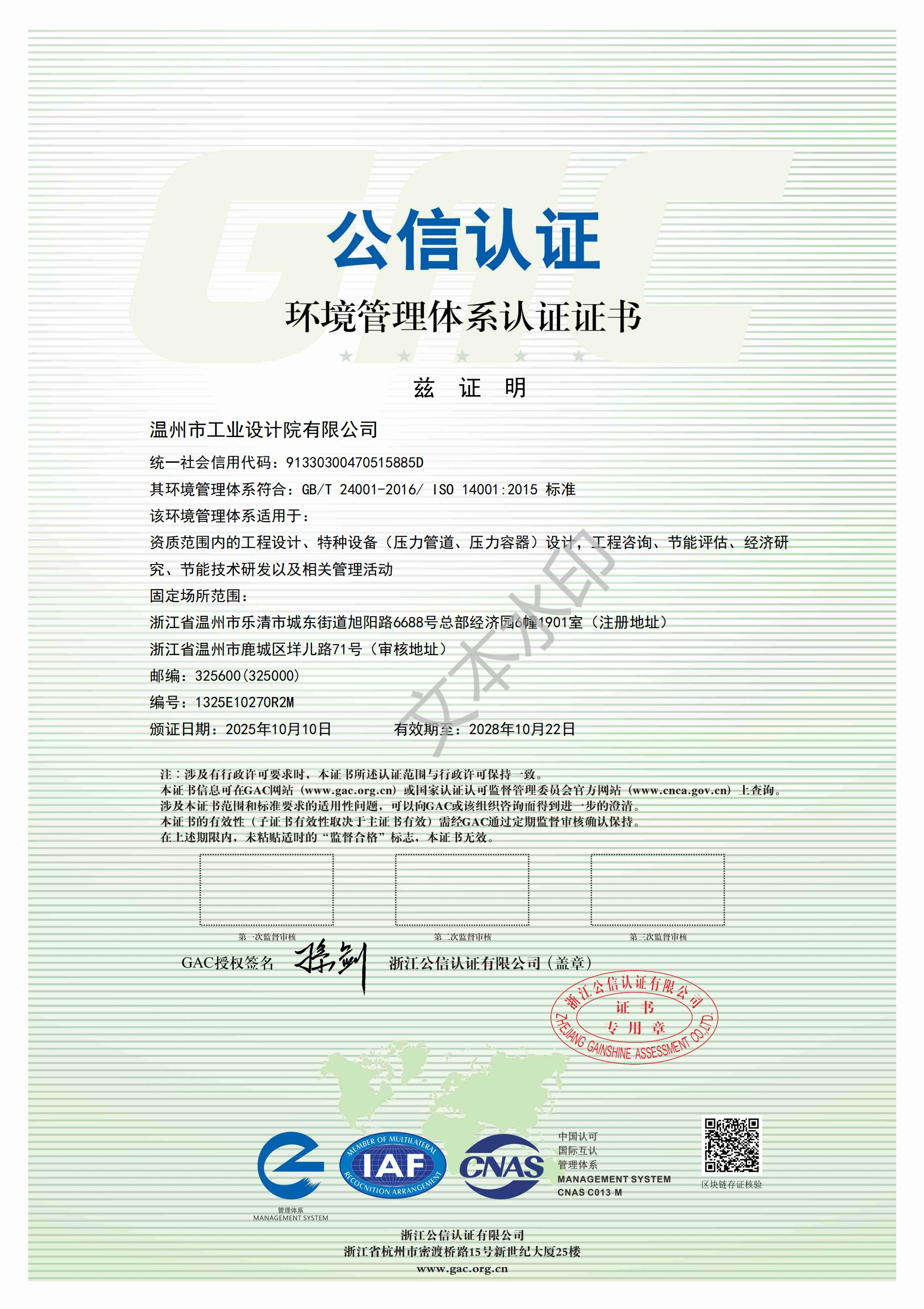 環(huán)境管理體系認(rèn)證證書(shū)